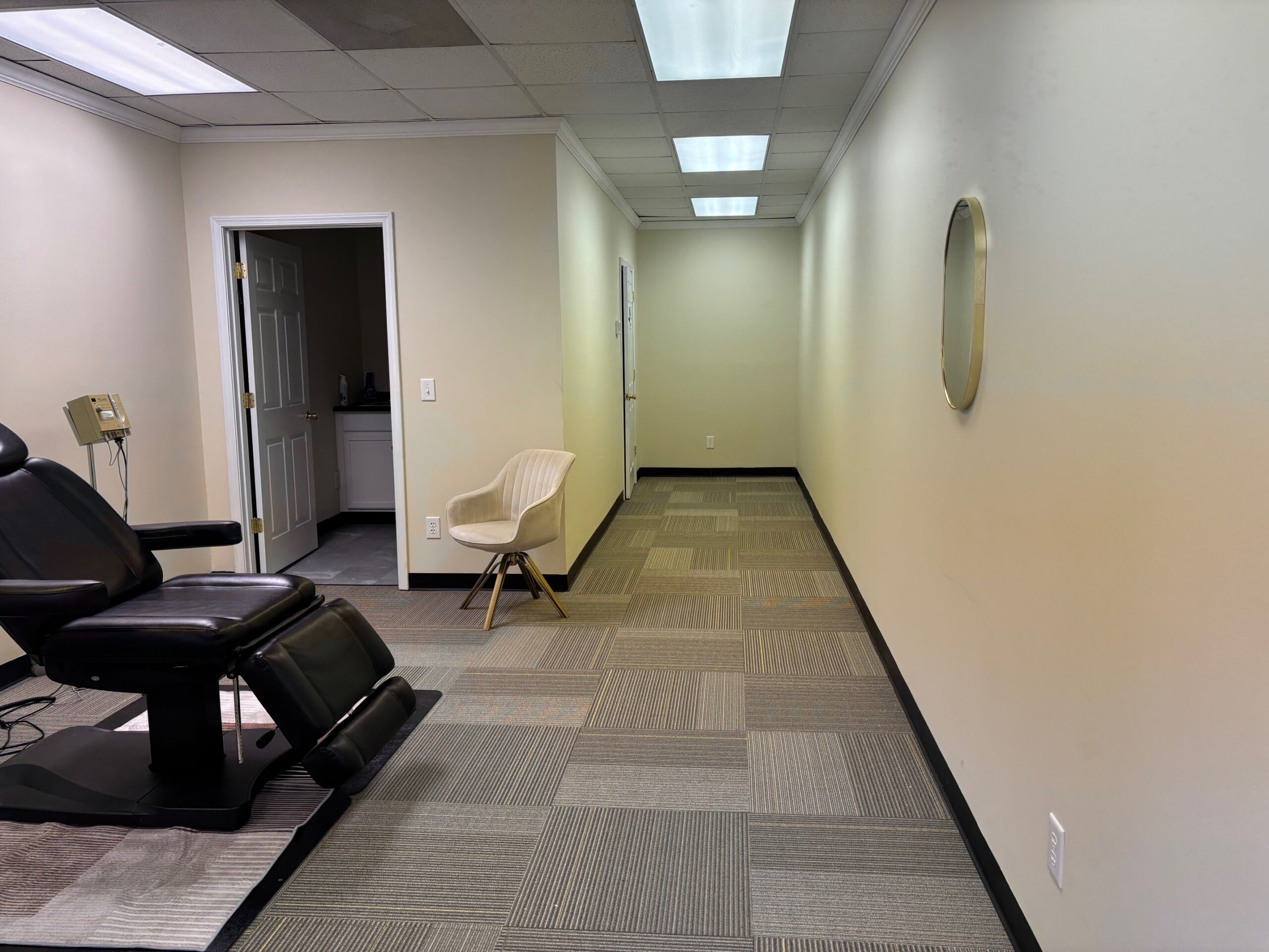 Yadkin Plaza is a multi-tenanted building for professional office use with over 25,000 +/- square feet that faces Commerce Avenue and Byrd Street with close proximity to US Hwy 15-501, the main retail corridor in Moore County. Suite 14B features 500 +/- square feet with a front waiting area separate from the main office area, kitchenette, and private restroom. The suite has individual temperature control. Lease includes TICAM, semi-annual HVAC contract, water, electric, termite inspection, and trash removal. Ample parking for staff and clients.