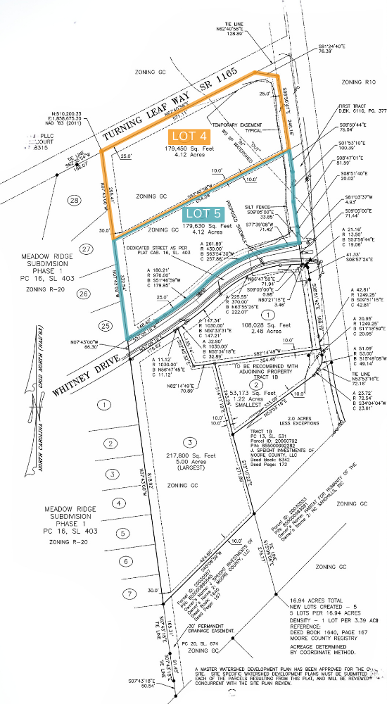 Discover the development potential on NC 5 in rapidly growing Aberdeen. This offering includes two lots with frontage on NC 5—the main route between Aberdeen and Pinehurst. Lot 5 also has frontage on Whitney Drive, the entrance to Meadow Ridge, a 150+ home neighborhood, while Lot 4 has frontage on Turning Leaf Way. The sites offer excellent visibility, easy access to US 1/15-501, and are less than a mile from Martin Farms, a future community of 500+ planned residential units. Boasting a traffic count of 14,000 AADT, these lots present a rare opportunity to invest in a fast-developing area.